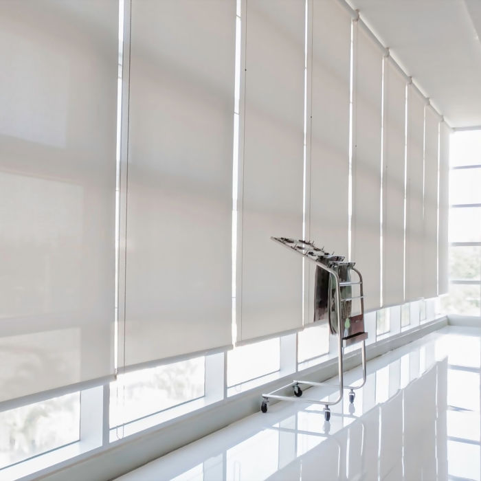 Cortina Rolô Tela Solar 5%, Design, Praticidade e Beleza. As Telas Solares são muito utilizadas, pois impedem os raios solares e Permitem uma visibilidade externa que integra a paisagem ao ambiente.