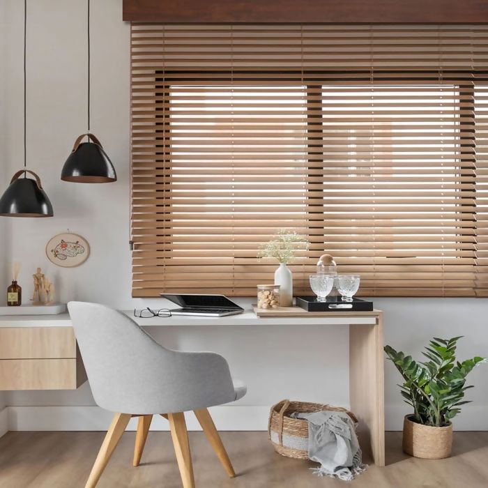 Além de um produto decorativo a persiana 50 mm de madeira é bastante prática protegendo seus móveis, eletrodomésticos da ação cruel do sol.