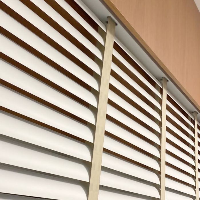 Ao escolher a opção com Bandô, sua persiana horizontal em alumínio, irá acompanhada de um bandô de madeira, produzido em 100% Mdf de alta qualidade.