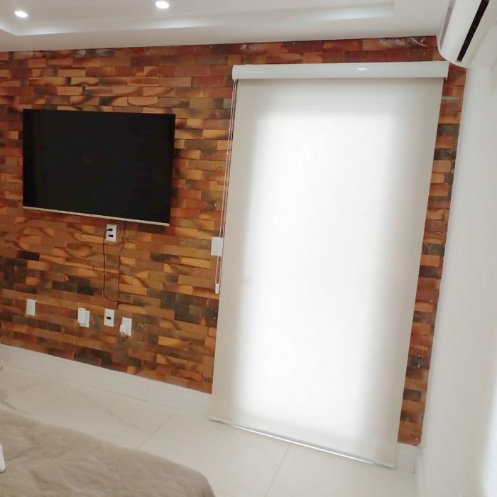 O tecido bloqueia 100% da luz externa, com a persiana instalada na parede ou teto. Quanto maior for a persiana comparado a janela, maior o efeito blackout.