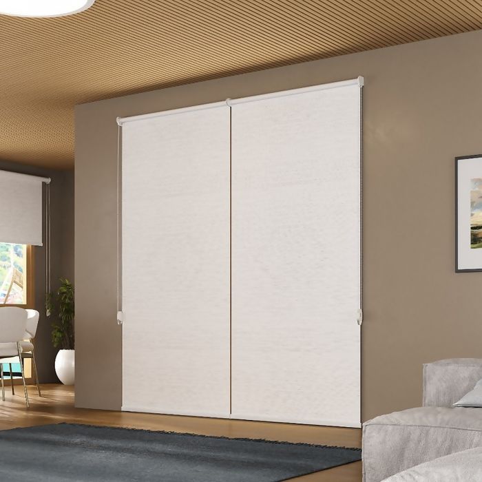 O tecido bloqueia 100% da luz externa, com a persiana instalada na parede ou teto. Quanto maior for a persiana comparado a janela, maior o efeito blackout.
