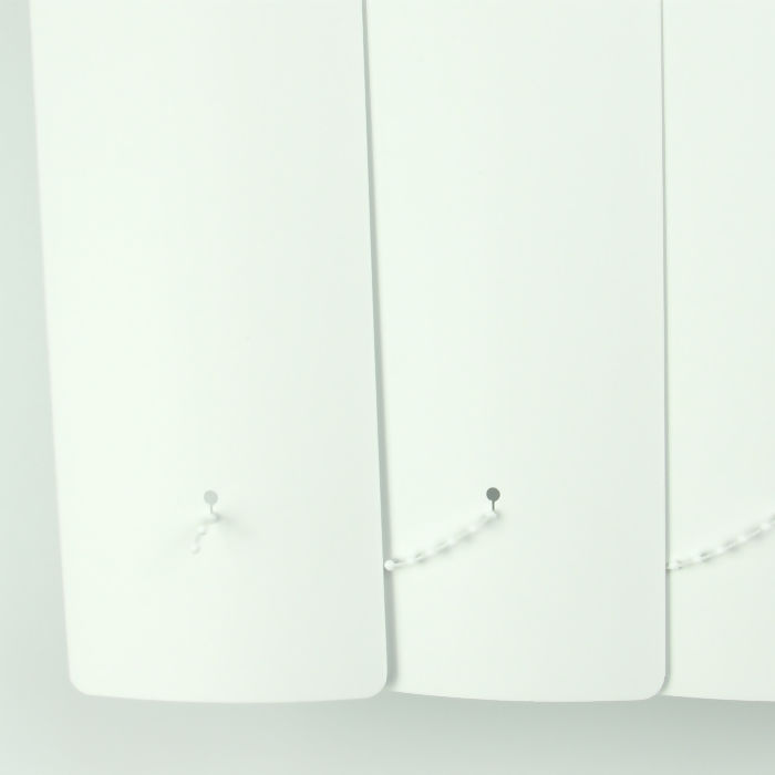 PASSO 6: Encaixe as lâminas em todos os bicos da parte inferior do trilho, indiferente se for em tecido ou pvc, sempre mantendo a mesma sequência de posição das lâminas.
